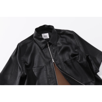 丝滑挺阔感 高档全醋酸 拉链短袖翻领衬衣