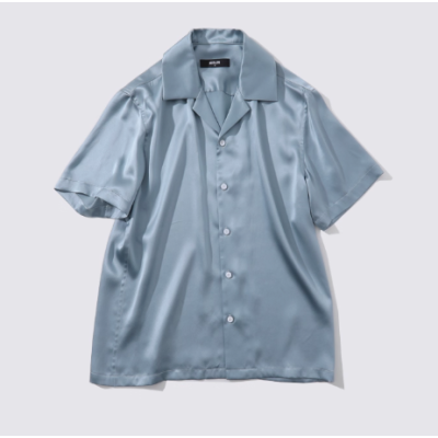 可机洗18姆米干丝衬衣80%桑蚕丝20%锦伦古巴领短袖衬衫