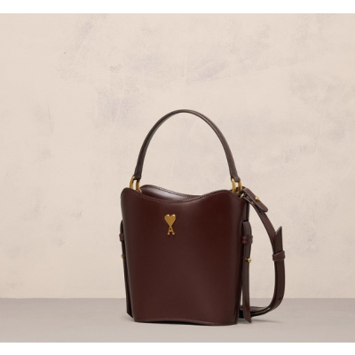 AMI经典款Paris Paris系列牛皮斜挎手提抽绳水桶包
